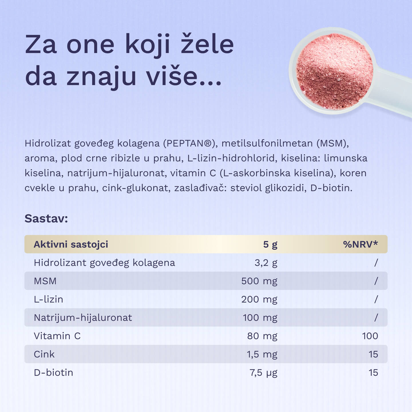 “Poručila sam zbog bolova u kolenu. Imam problema sa meniskusom i artritis u kolenu. Nisam mogla pravilno da kleknem i jedno koleno nije bilo toliko fleksibilno. Zato pijem wellbe kolagen već nekoliko nedelja i mnogo mi je pomogao. Ne pijem ništa drugo niti koristim, samo ovaj kolagen. Nemam bolove i sada su mi oba kolena gotovo jednako dobro pokretljiva.”
